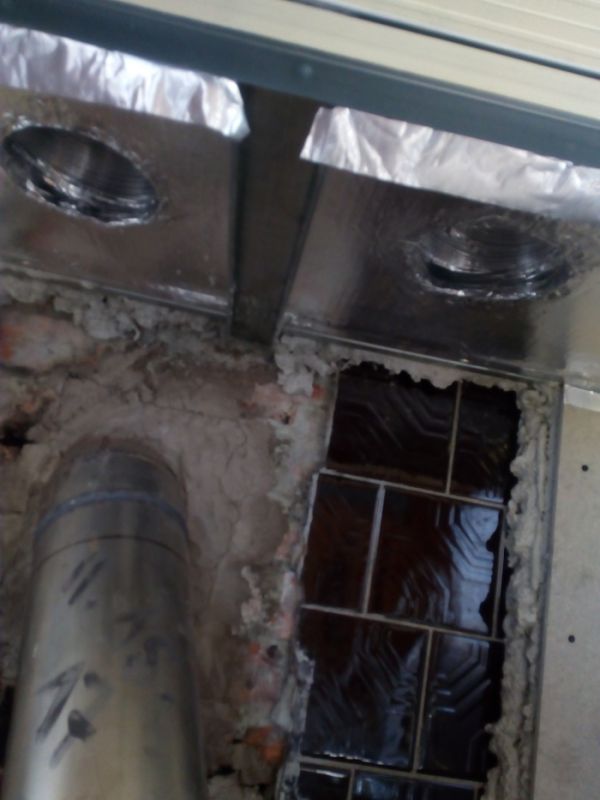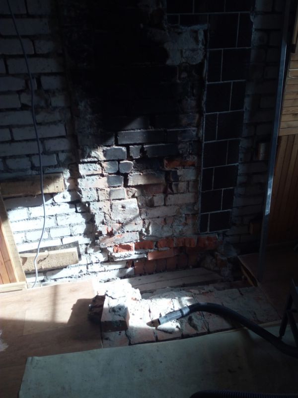 В кирпичном доме постройки 1985 года с деревянными перекрытиями во внутренней кирпичной стене 380 мм толщиной был устроен дымоход у которому со стороны кухни (8 м2) была пристроена дровяная плита на две конфорки с духовкой, а со стороны гостиной (25 м2) открытый камин (1*1 метр)облицованный керамической плиткой . Плита топилась нормально, а камин при растопке дымил сильно, да и тепла не давал.