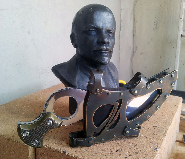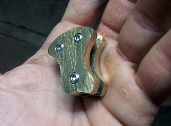 Рукоятка будет латунной, для баланса, из двух кусочков 5мм шины. крепиться будет втулками и болтиками.