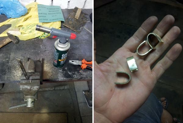 Нагреть горелкой, согнуть нужным образом, отрезать, повторить еще три раза. После этого выпилить как захотелось и отложить в сторону (на руку отложить, на руку!):