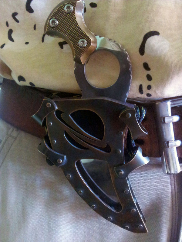Ах да, на пояс ножны крепятся кожаными шнурами в идеале, но у меня был в запасе только паракорд: