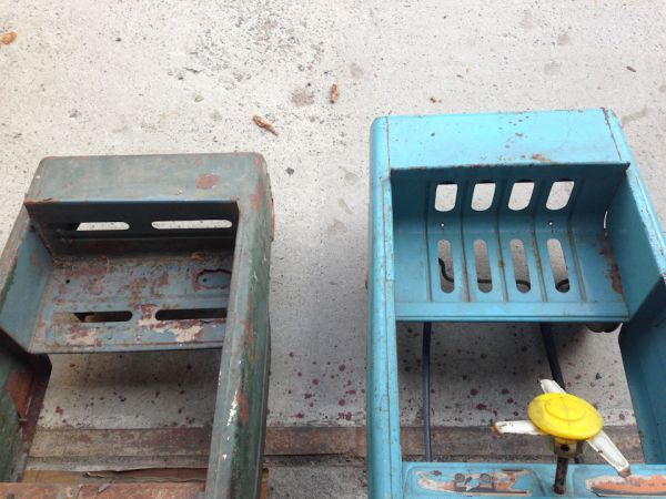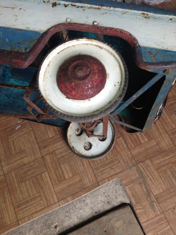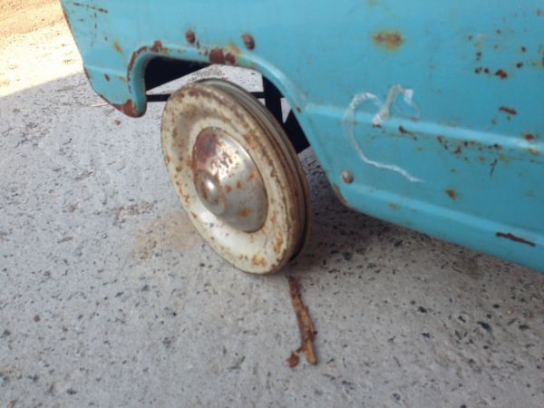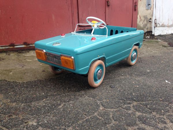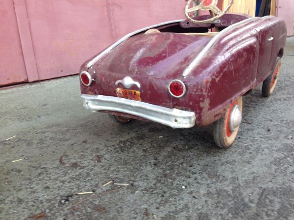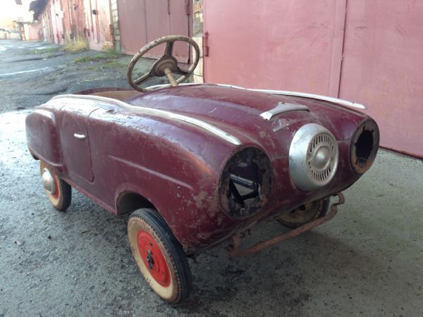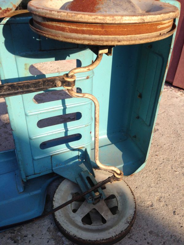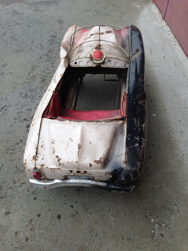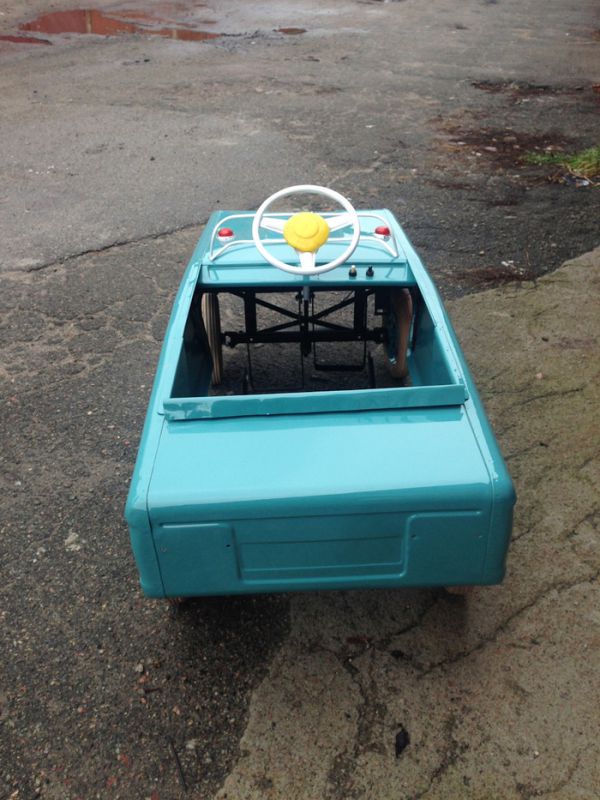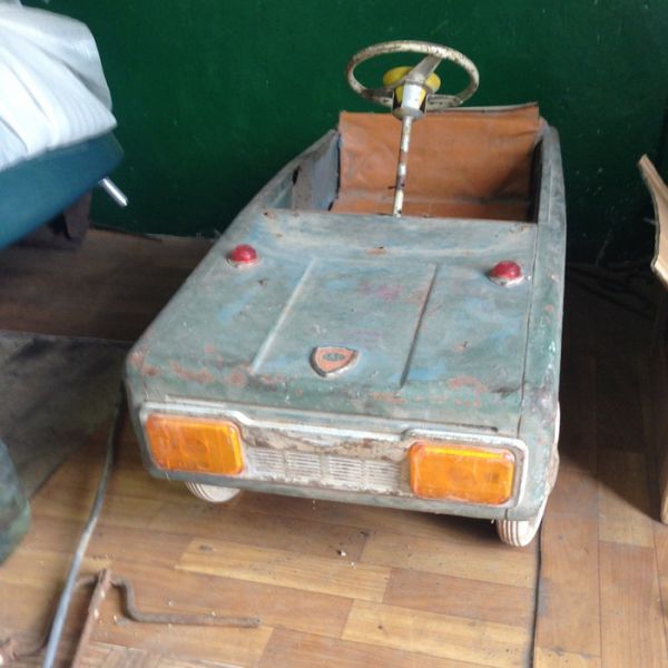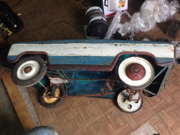 Еще там сохранились некие контактные пластины на педалях и проводка. При движении педалями должны перемигиваться фонарики на капоте! Во как! для меня это было открытие. Задняя подвеска была на пружинах, все наварено, задняя ось с колесами вообще не понятный колхоз. Все разобрал, кузов выбросил!