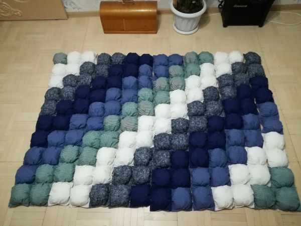 Пришиваем мешочки друг к другу линиями по 10 штук, получается такая заготовка: