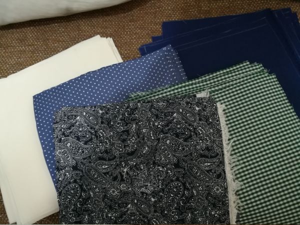 также нужна какая-нибудь простая ткань для изнаночной стороны, она будет скрыта внутри одеяла. Ткань разрезается также на 140 квадратных лоскутов размером 15х15 см. Для этого я взяла старый пододеяльник, который мне давно не нравился.