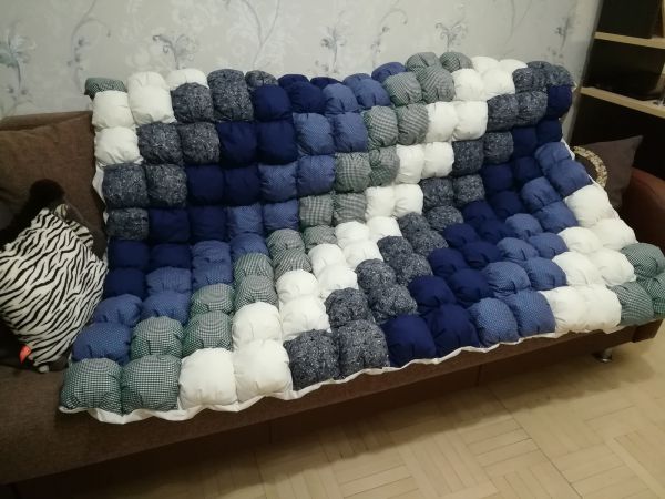 Этой осенью я увлеклась лоскутным шитьем. И подумала, а чего мелочиться? Эх, была не была, сошью сразу одеяло! Но не простое, а набивное (такое называют "бисквитное" или "бон-бон"), обычно такие шьют для детей, но у меня взрослый вариант - 140х196 см.