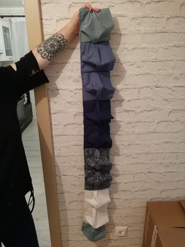 Здесь мы уже можем видеть, как будет выглядеть готовое одело, осталось только сшить полосы между собой: