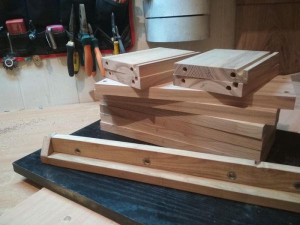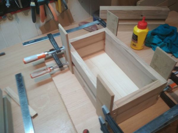 На фото ящики собраны на шурупах,я же решил всё собрать на шканты,для эстетики.Для удобства сделал кондуктор,который исключил нудную разметку