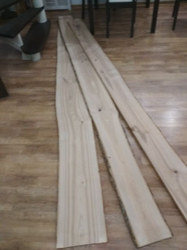 Давно не знал куда приложить руки, поэтому согласился практически сразу.Привез он мне три доски,ясень,20мм после рейсмуса.