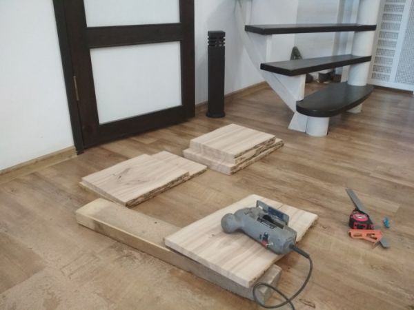 В ход пошло практически все.Паркетницей распустил по ширине,ручным фрезером обработал пласты для склеивания.Получилось вот так