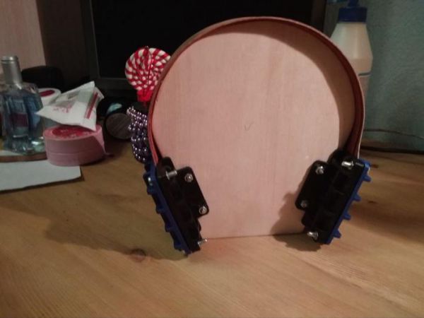 Дальше, сфоткал свою голову, в CAD программе отрисовал по фото оправку с учетом распрямления оголовника после снятия с оправки. Вырезал из 21-ой фанеры оправку, распечатал на 3D принтере боковые зажимы оправки.