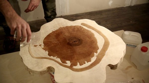 Затем покрываем поверхность лаком, маслом, или эпоксидкой как в моем случае. Поперечный спил все стерпит