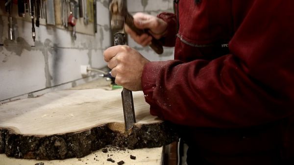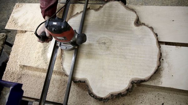 Но сразу их использовать нельзя, а нужно как следует просушить и если у вас нету сушильной камеры то процесс займет 2 года, но я особо не ждал и через полгода приступил к работе ибо спил поперечный и влага выветривается быстрее. вообще нюансов много, если не прав то поправьте. Далее сухой спил фрезеруем на рейсмусовом столе в идеале, но можно аккуратно пройтись рубанком и зашлифовать ленточно-лифовальной машинкой, убираем кору, но можно её и оставить, кому как нравится.
