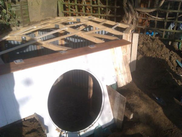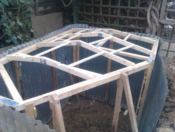Внутри ограждения из гофрированного металла был установлен деревянный каркас постройки.