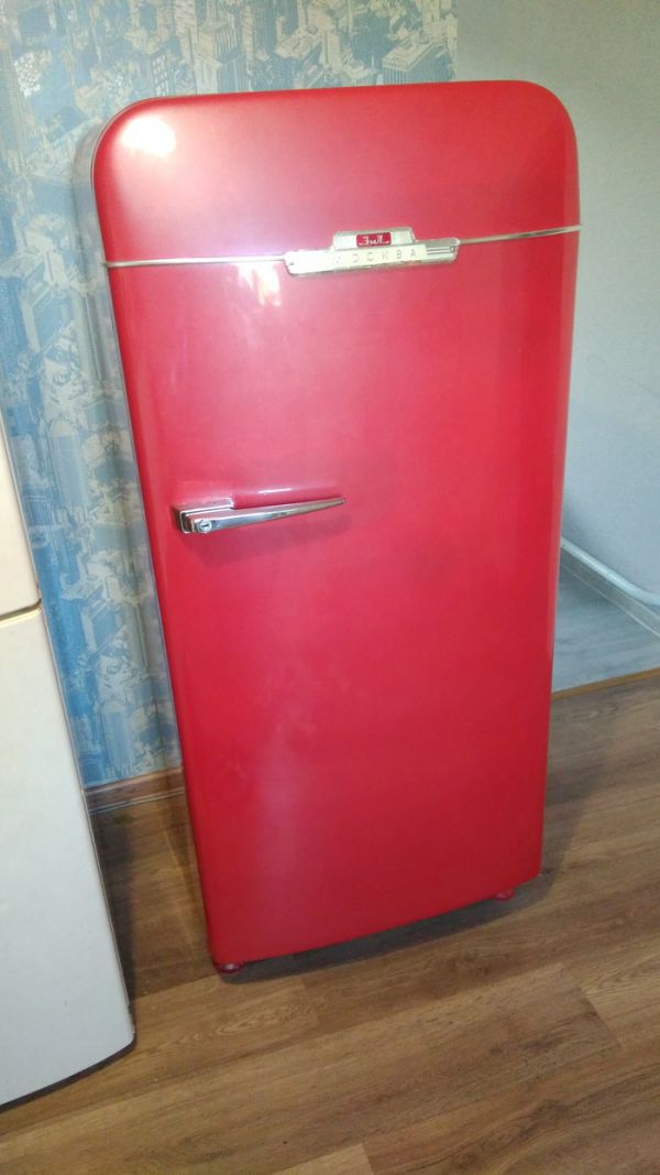 Осенью 2017 года в местной мастерской увидел холодильник ЗИЛ-Москва 68 года выпуска в хорошем состоянии, очень он мне понравился, в голове сразу созрел план его отремонтировать и покрасить в красный цвет. Бывшие владельцы от ремонта отказались из-за высокой цены, и всего за 500 рублей мне его привезли домой.
