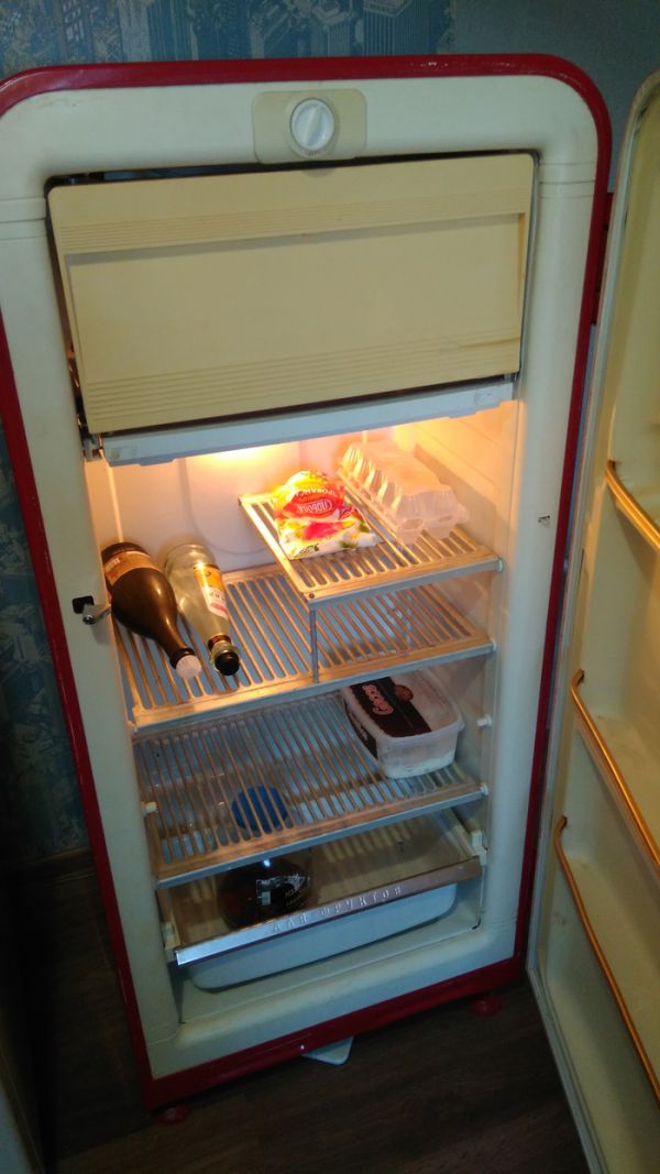В итоге холодильник работает, внутри свет от родной лампы выпущенной в далеком 1968. Пользовались им в новогодние праздники. Друзья оценили.