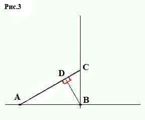 Из точки В проводим перпендикуляр на линию АС и обозначаем точкой D