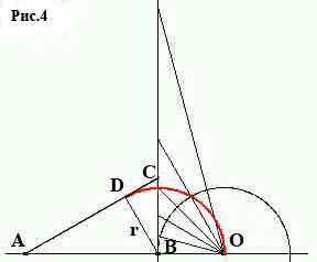 Далее из точки В проводим окружность радиусом ВD до пересечения с прямой АВ, и отмечаем точку О. Теперь используя эту точку в качестве центра чертим окружность радиусом ОВ, и делим её на секторы по 15°, продлевая каждый луч до линии ВС. Точки пересечения лучей с линией определят часовую разметку наших часов.