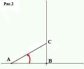 Чертим две взаимно перпендикулярные линии и отмечаем точку А.