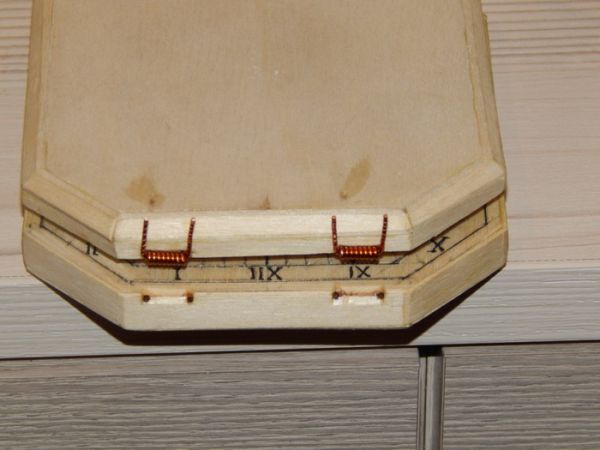 И ещё одна функция такого компаса- картушка, помимо указания направления на север, работает как уровень для установки плоскости часов в горизонтальном положении. Конечно лучше было бы дополнительно установить пузырьковый уровень, но за неимением оного решил, что установка горизонтальности по картушке будет достаточно для игрушки-сувенира, сверять по ним куранты никто не будет.