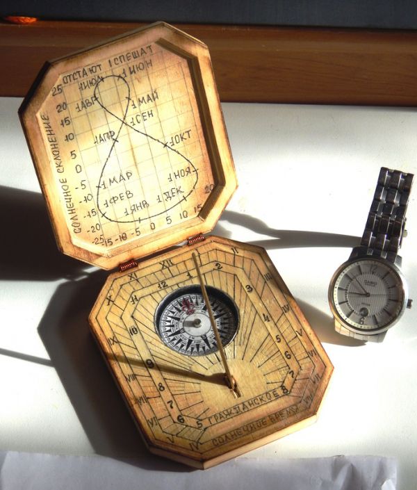 Предлагаю вашему вниманию занимательную поделку, сделанную своими собственными руками из подручных материалов. С одной стороны это просто игрушка, сувенир, а с другой- серьёзная вещь, для пользования которой требуются некоторые знания и навыки в таких областях науки как астрономия, география, математика и физика. Речь пойдёт о древнем приборе для определения времени- солнечных часах, о которых наверняка все слышали, некоторые даже видели, кто-то возможно даже делал. Подробно расписывать принцип работы и конструкции стационарных часов думаю нужды нет, в интернете очень подробно всё описано, остановлюсь лишь на нескольких деталях и особенностях.