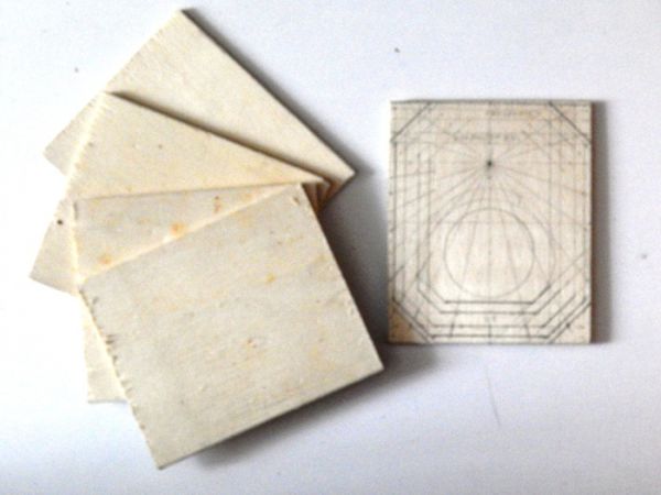 Условно разделим наш прибор на две части- собственно солнечные часы и крышку (у нас же они карманные, значит будут иметь вид портсигара). Из листа фанеры нарезаем пять прямоугольников размером 100х120 мм.