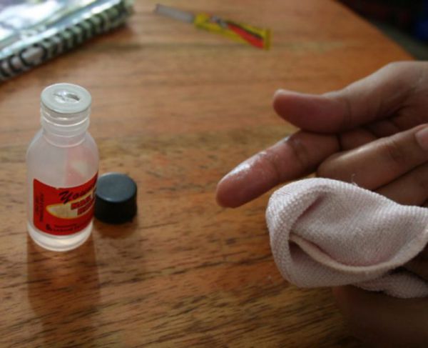 Диметилсульфоксид – это лекарственное средство, которое не составит труда найти в ближайшей аптеке. Используется он в качестве анальгетического и противовоспалительного средства. Вещество имеет формулу С2Н6OS. Препарат этот широко распространен и не стоит больших денег. Само собой, для процедуры выведения клея нужны будут ватные макияжные диски. Можно раздобыть еще мягкую тряпочку для шлифовки.