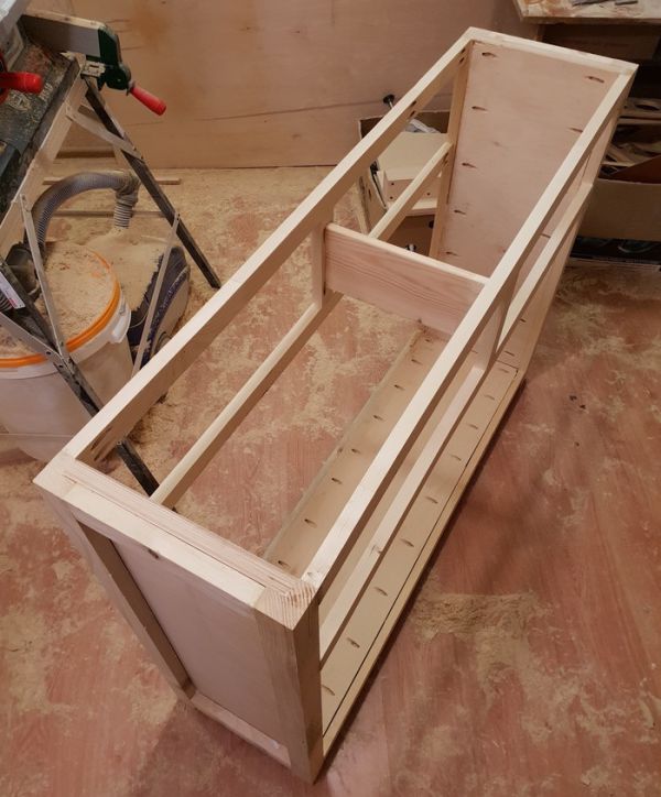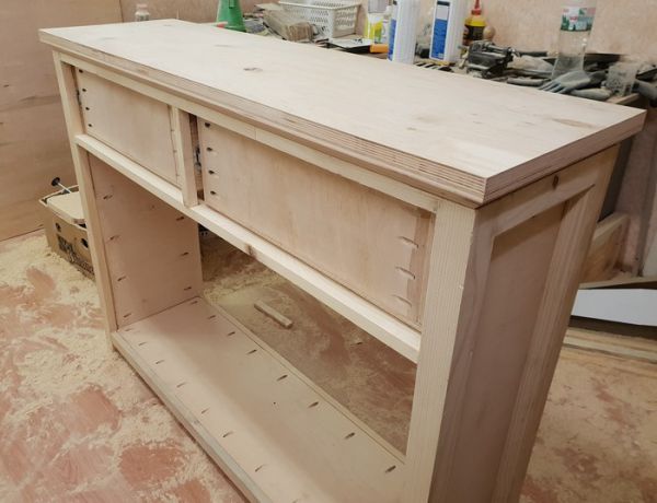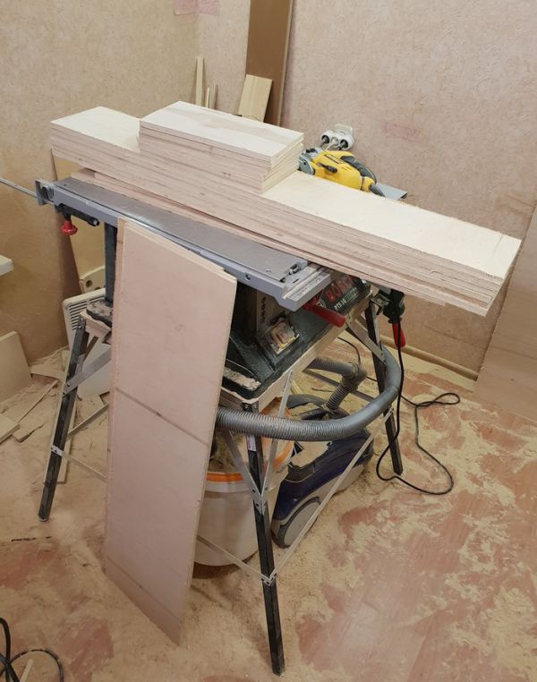 Нарезаем заготовки под столешницу, ящики и собираем их в кучу