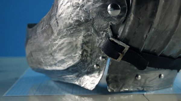 Боковой ремешок вырезал из кожзама, застежки для него нашёл в старом хламе и приклеил все на место. Причем застежку приклеил к бевору, а сам ремешок к куполу. Таким образом для раскрытия шлема ничего расстегивать не нужно