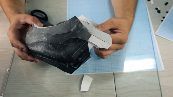 В развертке забрало и бевор были отдельными деталями, так что после сборки шлем будет функциональным. Одно "Но", у бевора не было креплений, так что пришлось добавлять их самому.