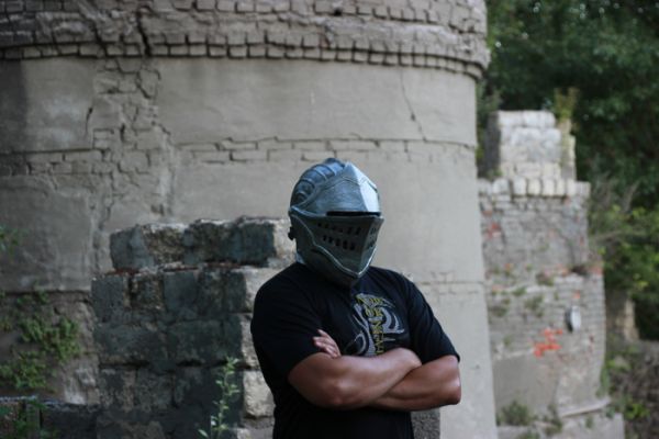 И собрал все в кучу - купол, забрало и бевор на мебельные болты, так что бы забрало и бевор открывались.
