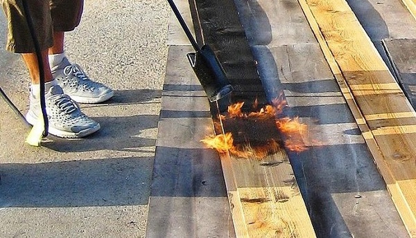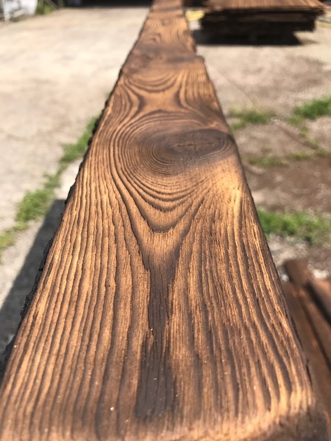Для ленивых и для пользователей мобильной версии, берем доску, обжигаем в огне, счищаем сажу (Брошируем), шлифуем при необходимости и покрываем лаком/маслом, кому как нравится.
