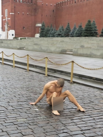Совершенно голый, украшенный только лентой с надписью „Долой стыд“, оратор на площади Краснодара кричал с трибуны: