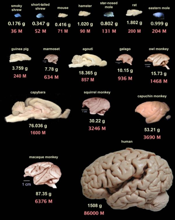 Ученые исследуют и определяют соотношение объема мозга к объёму тел живых существ на Земле. Так же они выяснили, у кого из животных самый тяжелый мозг. Известно, что и среди людей есть рекордсмены по весу мозга.