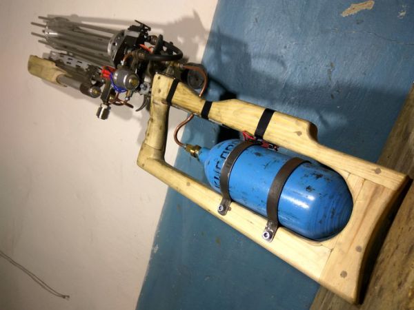 Арбалет получился довольно увесистым, но по субъективным ощущениям около 7 кг. Львиную долю веса берет на себя баллон.