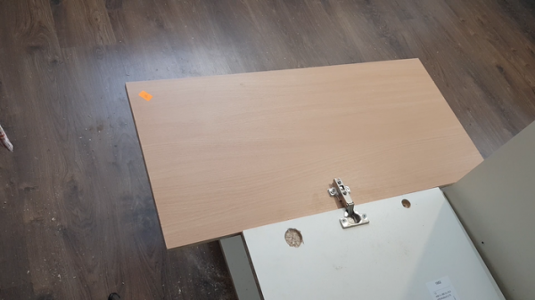 Далее я проверила диагонали, и начала примерку фасадов, а затем и разметку петель с помощью другого кондуктора. Чтобы саморезы не скользили по дсп, я сначала ковыряла отметки сверлом, а потом просто стучала саморезом....так вышло лучше.