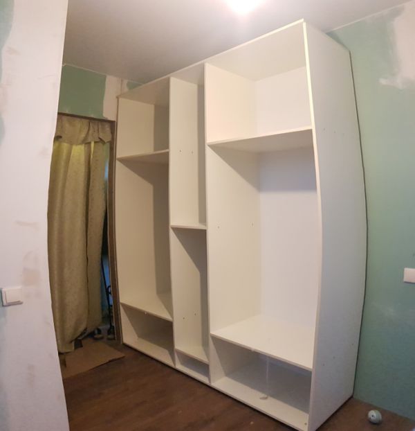 Помимо материала на шкаф я заказала все для гардеробной и кровати, но об этом в следующих видео. Кстати, очень удобно, не надо платить за доставку несколько раз. Но, к сожалению, пока я делала диван и кровать, заготовки много раз кочевали по дому, и поэтому некоторые имели сколы, поэтому будьте аккуратны.