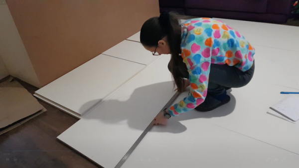 Продумав все это, сделав деталировку шкафа, который я могу собрать своими руками, рассчитав где мне нужна кромка а где нет, я отправила свои расчеты в разные компании, которые занимаются распилом лдсп, некоторые отвечали по несколько дней, не знаю, с чем это связано, но если вы в курсе, напишите об этом в комментариях, будет очень интересно узнать, чем они так все заняты. В общем я выбрала наиболее подходящую компанию по цене и по отзывам в интернете. К моему удивлению пилили они целую неделю, ну да ладно, главное что все было ровненько, а на каждой детали была наклейка с размерами.