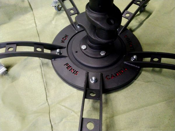Там написано "lingua latina non penis canina". История этой надписи проста. Спрашиваю заказчика, мол, может напишем чонить? Ну там "Х**" или "тут был вася"? Он прислал надпись на латыни, типа "я знаю точно, невозможное возможно, когда у тебя много денег, ты здоров как бык и ваще жизнь прекрасна и удивительна". Я ему пишу, мол, батюшка-барин, мы эту войну и мир сюда не поместим. У нас пять интервалов между лучами. Должно быть пять слом, примерно равной длины. Ну типа, говорю, "lingua latina non penis canina". Он такой: "окей, согласен, давай так".