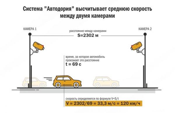 Вот что сообщают про якобы новый комплекс: на въезде и выезде из зоны контроля устанавливаются камеры, которые фиксируют координаты и время проезда автомобиля, а затем на сервере вычисляется средняя скорость движения на этом участке.