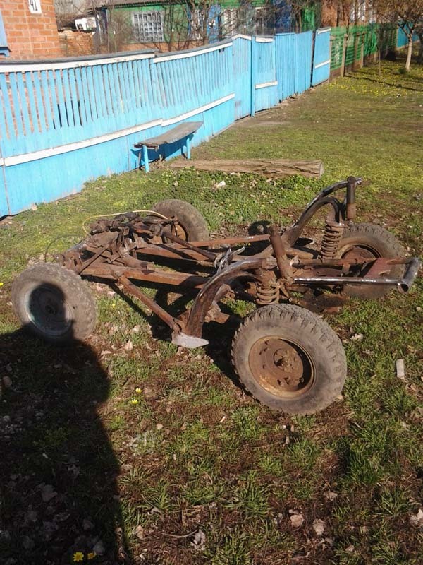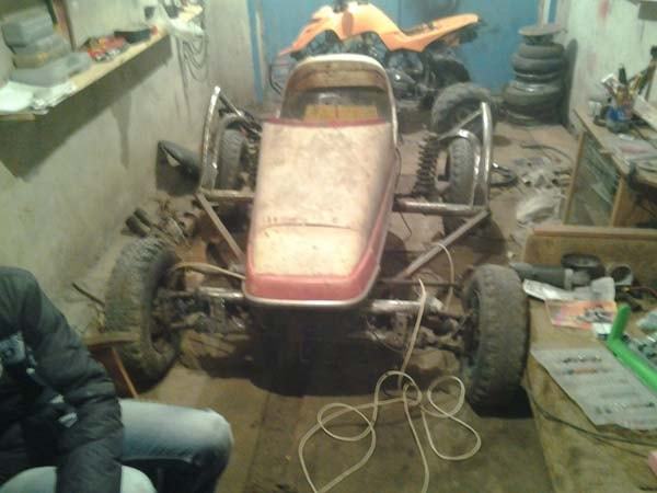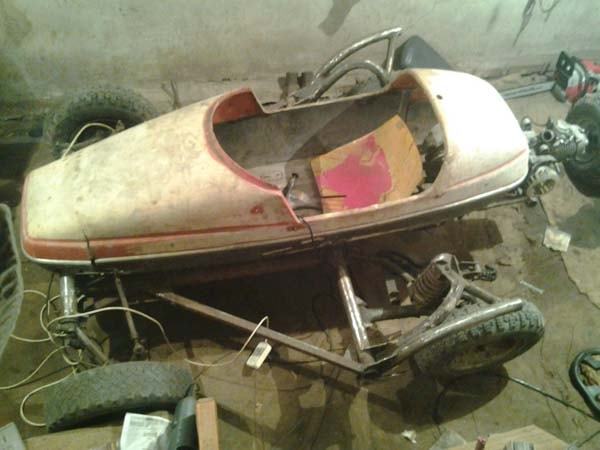 Особенность конструкции в том, что частью кузова послужила люлька от мотоколяски Явы. В результате получилась оригинальная машина для покатушек.