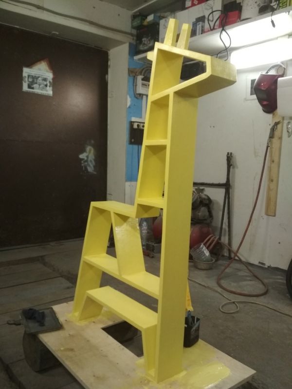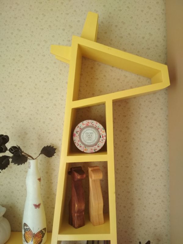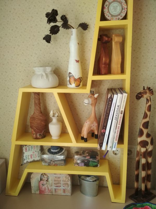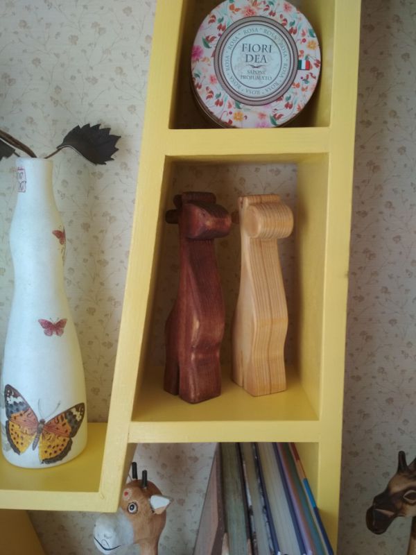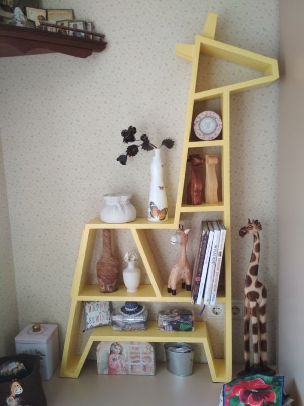Мама занимается рукоделием и одновременно с этим как-то начала собирать фигурки жирафов. Без фанатизма, но ставить их уже некуда). Повелела друзьям и знакомым больше не дарить этих тотемных животных. Могу сказать, что искать их в сувенирных лавках довольно проблематично, но я всегда справлялся и привозил их из поездок. И вот в качестве апофеоза собирательства я решил сделать полку в виде жирафа.
