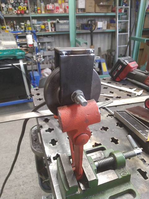 Теперь переходим к слесарке. Из остатков ккого-то предыдущего проекта, а именно полосы 40х4 делаются щёки, которые сразу же собираются через шайбы в пакет финальной толщины, измерик каковой и вычтя 4мм. получаем ширину верхней полки.