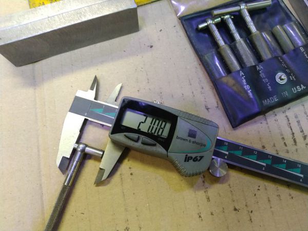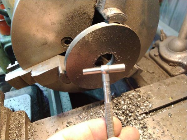 Но подшипник 608 имеет диаметр примерно 21,98 (китайские подшипы отличаются по диаметру примерно на 0,01-0,02мм.) Эти 0,98 надо снять начисто с помощью расточного резца. Сперва измерения производятся вот таким телескопическим калибром: