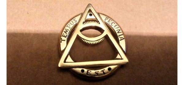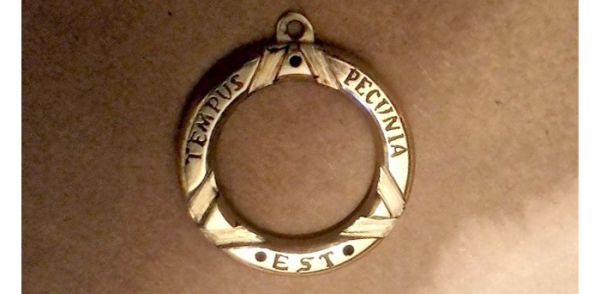 Самым трудоемким и нудным процессом было пропиливание пазов под треугольник на лицевой части корпуса, а также вытравливание надписи. На оригинальной картинке текст слишком длинный, к тому же я не совсем согласен с тем, что мелочи решают всё: это же не всегда так. На мой взгляд в нашей системе вещей всё решают время и деньги. Поэтому пришла в голову мысль написать простую фразу на латыни: время - деньги (tempus pecunia est).