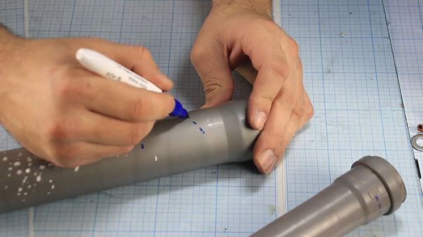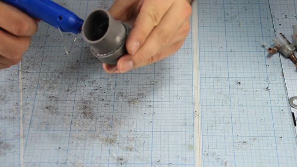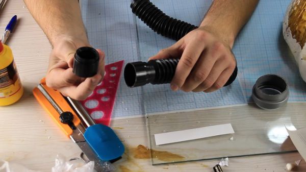 Фонарик я собрал из из 50й и 40й канализационных труб, обрезав и склеив их вместе на термоклей.