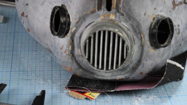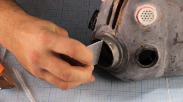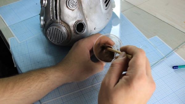 Так как версия шлема у меня изрядно потрепанная, то надобно его состарить. И начну я с нанесения ржавчины. Причем настоящей ржавчины, тщательно соскобленной со всех заржавевших металлических поверхностей, которые мне удалось найти, и разведенной в ПВА клее, до состояния пасты.