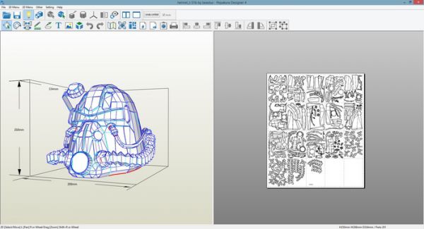 Итак, для изготовления всяких объемных вещиц типа шлема, на мой взгляд лучше всего подходит бумажное моделирование, или как его еще называют - Pepakura. Скачал развертку, открыл ее в программе Pepakura Viever и распечатал.