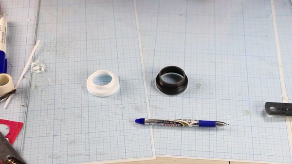А сам прицел из оставшихся патрубков от гофрированных трубок, с вклеенным в виде линзы куском оргстекла(можно просто вырезать из пластиковой бутылки)