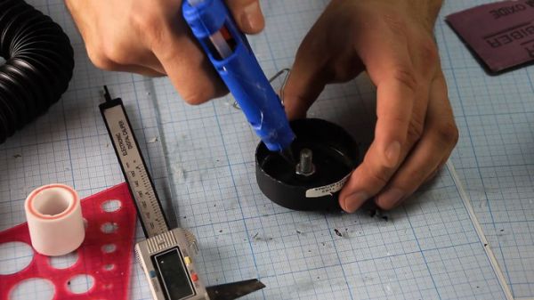 Основание прицела из крышки от баллончика с краской, обрезанной по размеру, с вклеенной вовнутрь гайкой.