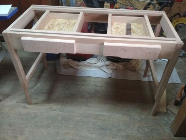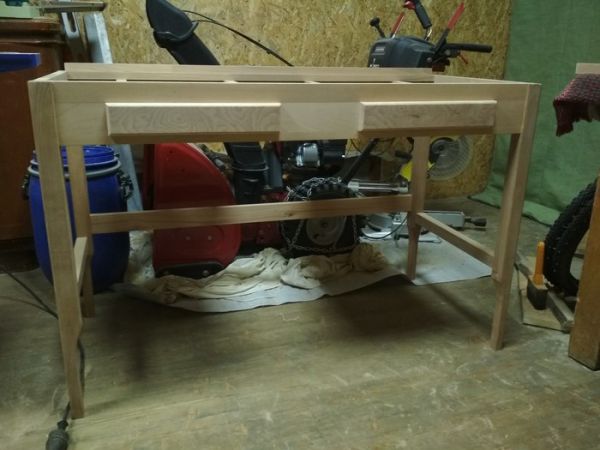 Итак, техническое задание заключалось в том, чтобы сделать для девушки письменный стол, на котором время от времени будет использоваться швейная машинка. В передней части стола девушка пожелала иметь два небольших выдвижных ящика. В качестве материала я выбрал бук, который, как оказалось, можно купить совсем недалеко от моего дома, что меня приятно удивило, ведь живу я в таком месте, где иногда приходится ехать 40 километров чуть ли не за туалетной бумагой. Никогда раньше я не покупал столярный пиломатериал, поэтому я был приятно удивлен второй раз, потому как бук оказался очень хорошего качества, без сучков и хорошо просушен.
