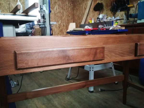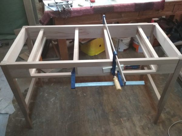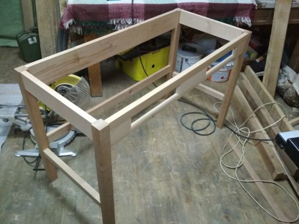 Такая конструкция позволила мне решить две проблемы одним выстрелом. За счет относительно малого сечения длинных реек царга приобрела возможность немного скручиваться винтом под нагрузкой, а в образовавшихся проемах я размещу выдвижные ящики.